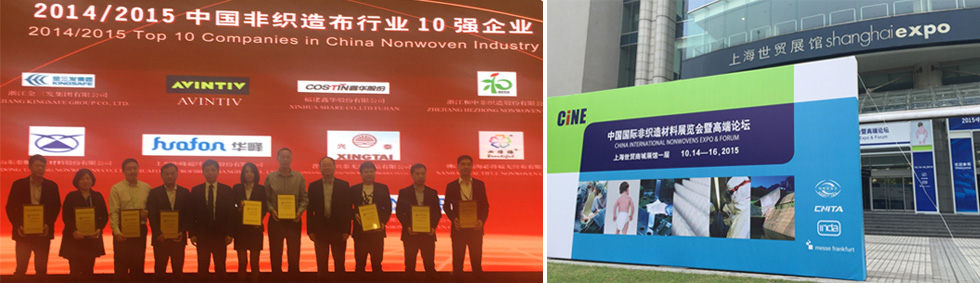 2015年10月14日,由中国国际贸易促进委员会纺织行业分会、中国产业用纺织品行业协会、美国非织造布协会、法兰克福展览(香港)有限公司共同主办,为期3天的“2015年中国国际非织造材料展览会暨高端论坛”在上海世贸商城隆重开幕。作为目前国内首个由行业协会主办的非织造领域的专业展会,本届展会定位“专业、品质、高端”,展出面积达6000平方米,国内外参展商近百家,主要参展产品包括医卫用非织造布、过滤用非织造布、建筑用非织造布等。展会期间同步举办第四届中国国际非织造布会议(上海2015),并发布“2014/2015年中国非织造布行业十强企业和优秀供应商”名单。
