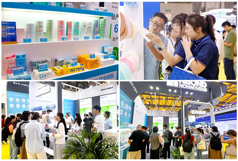 此外,诺邦股份子公司Bonyee邦怡科技也展示了其在无纺制品深加工方面的成果,产品覆盖家庭清洁、个人护理、工业擦拭和医疗健康四大应用领域,展现了公司在产业链延伸与技术集成方面的实力。